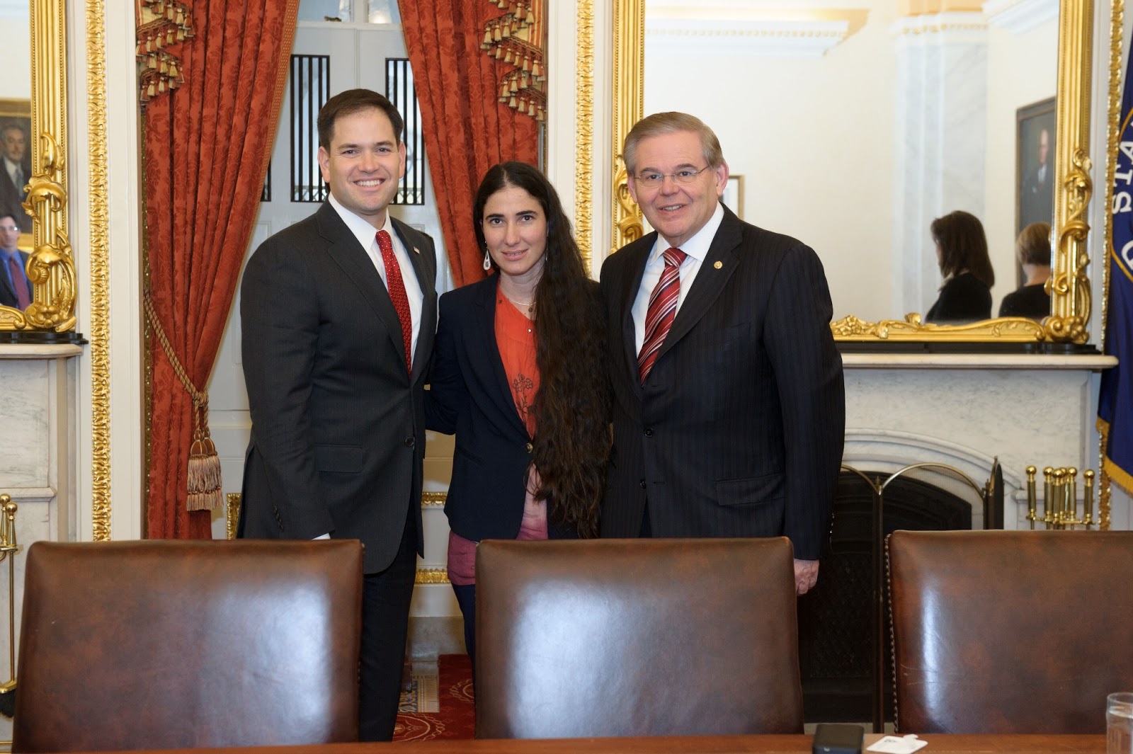 Marco Rubio, Yoani Sanchez and Bob Menendez in Washington, D.C.