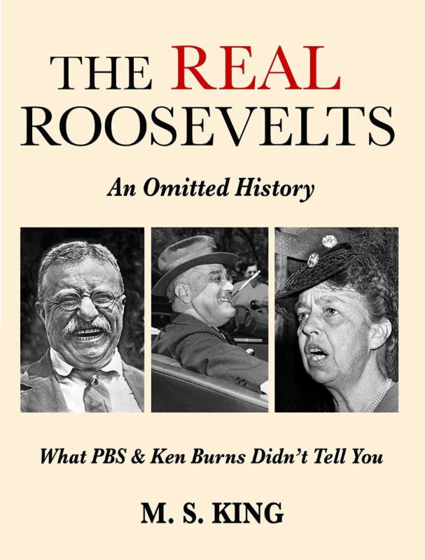 The film and book, 'The Roosevelts: An Intimate History' by PBS wonder-boy Ken Burns has been "widely acclaimed" by the propaganda press. It's time this arrogant charlatan, and his beloved Roosevelts, got taken down a few notches. M S King's latest brass-knuckled masterpiece, 'The REAL Roosevelts: An Omitted History' will send the Roosevelt-lovers into fits of panic.