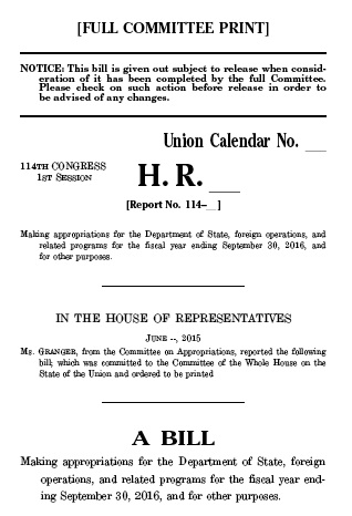 The committee's proposed fiscal year 2016 State and Foreign Operations Appropriations bill reads: