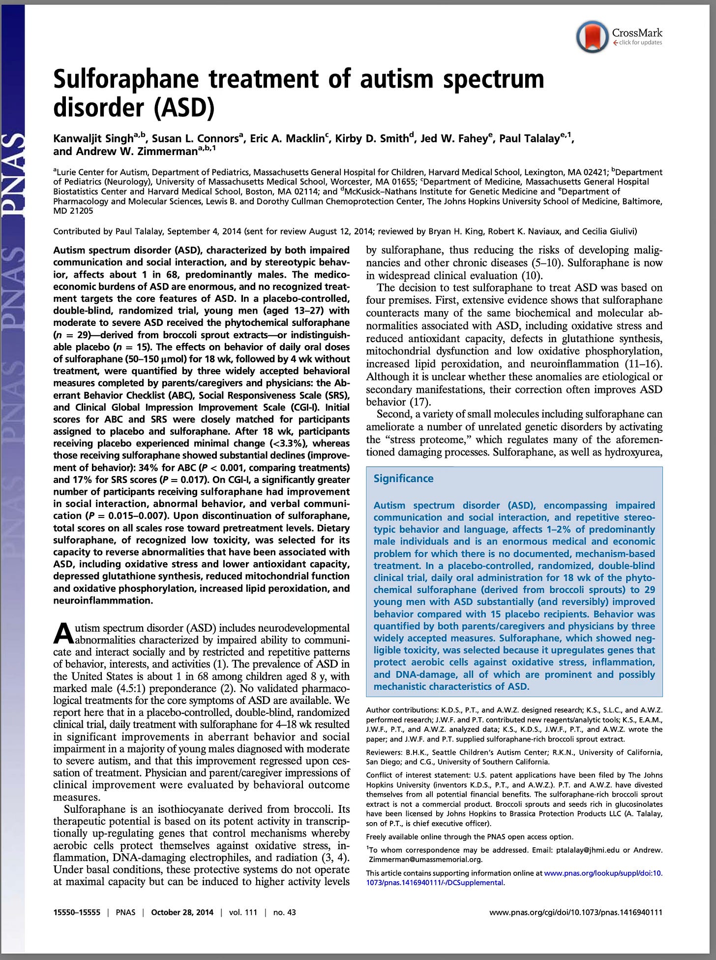 The sulforaphane study’s lead researcher, Dr. Andrew Zimmerman, put it best: