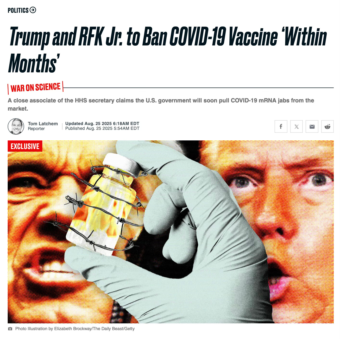 Today, The Daily Beast ran a piece dripping with anxiety—claiming that Trump and RFK Jr. could move to ban mRNA COVID vaccines within months.