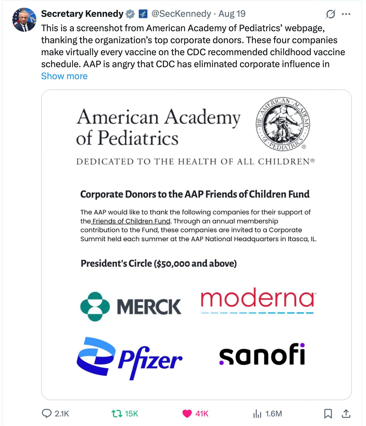 But this lie is ending before our eyes. No amount of spin from the American Academy of Pediatrics—beholden to their Big Pharma funders—can hide what parents and patients are witnessing firsthand