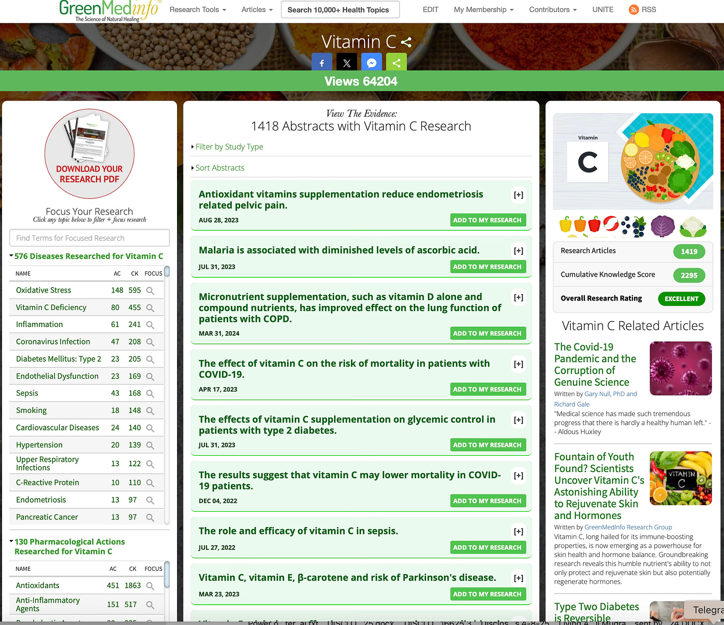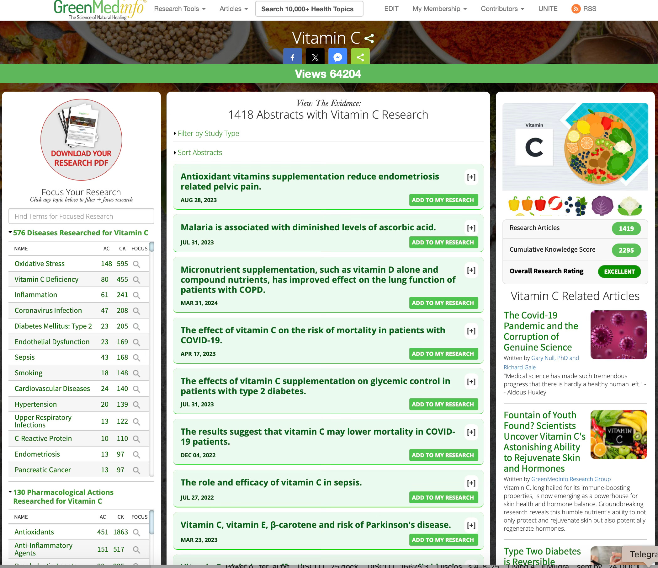 Vitamin C: Demonstrates extraordinary safety margins, with oral LD₅₀ values approaching 11,900 mg/kg in rodent models (with over 500 potential therapeutic applications documented on the GreenMedinfo Vitamin C database)
