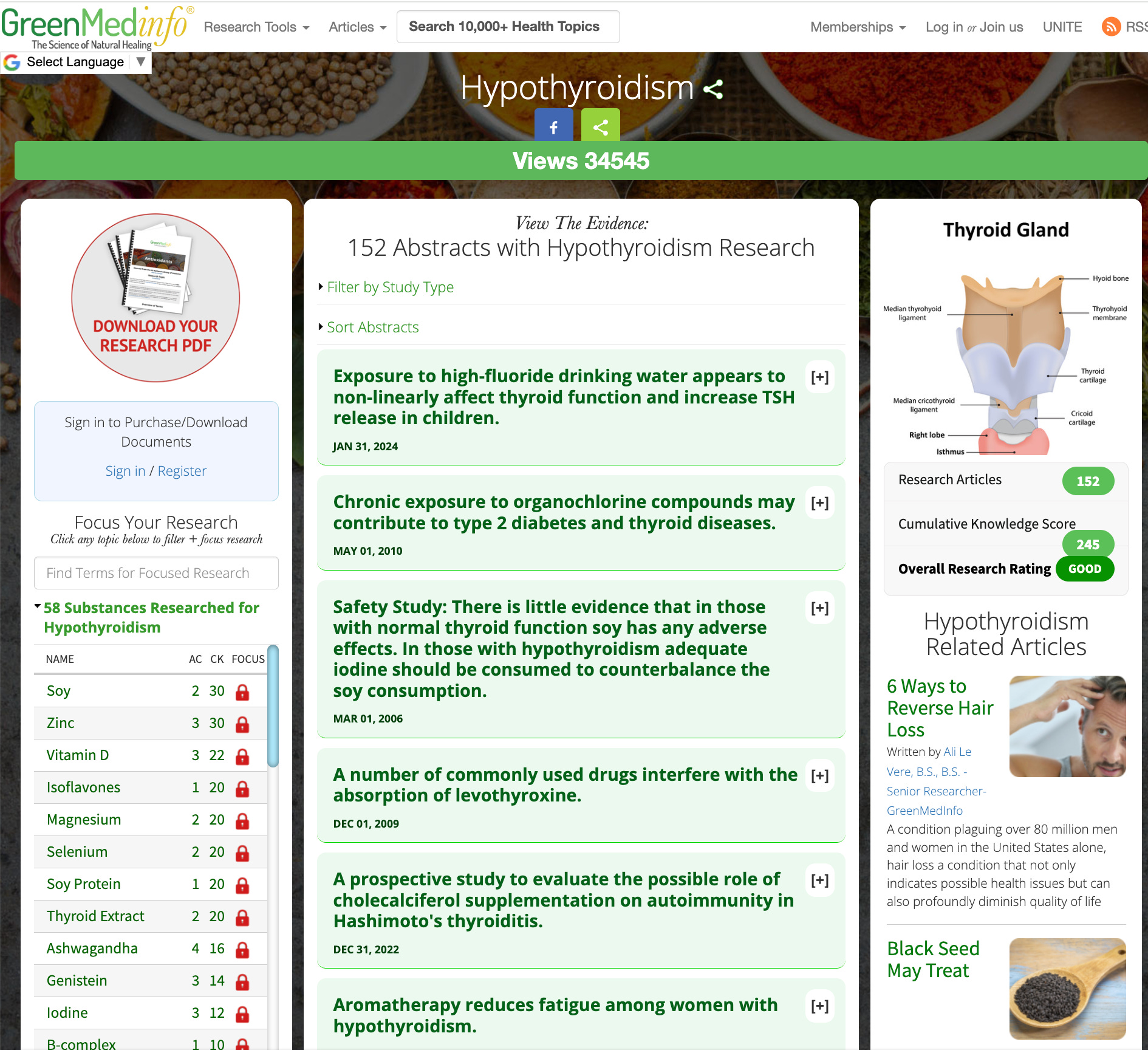*Consult the extensive Greenmedinfo.com Hypothyroidism database for more primary literature and translational articles on this health area.