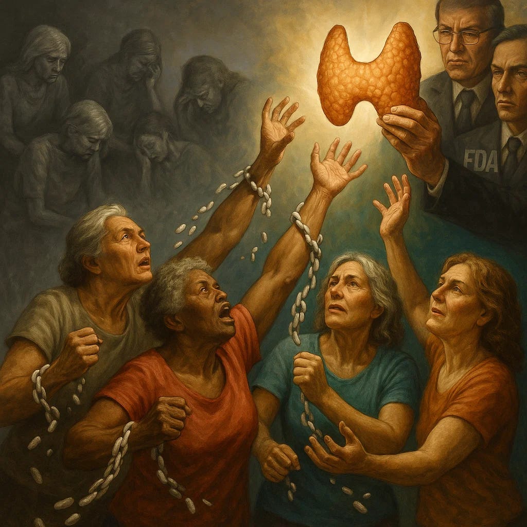 This is the systematic dismantling of a treatment that has worked successfully for 130 years—since 1891 when Dr. George Redmayne Murray first used desiccated thyroid extract to save a woman dying from myxedema, an extreme form of hypothyroidism.[2] The FDA's August 6, 2025 enforcement letters threatening to ban all natural desiccated thyroid (DTE) products—including Armour Thyroid, NP Thyroid, and Nature-Throid—represent medical tyranny designed to funnel billions into synthetic drug manufacturers while condemning millions to unnecessary suffering.