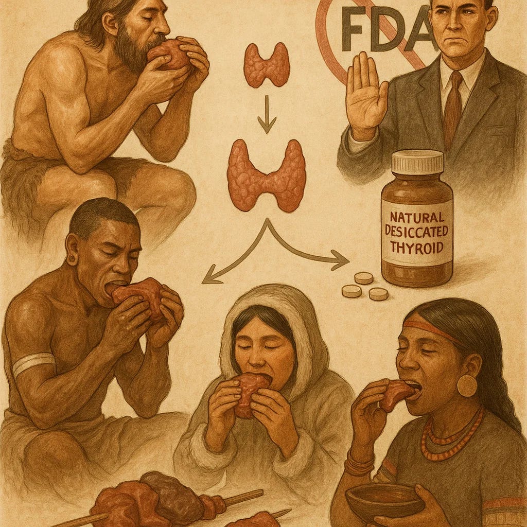 But here's what makes this particularly egregious: natural thyroid is essentially ancestral food—organ meat that humans have consumed for millennia. The FDA is attempting to ban what is fundamentally a concentrated form of dietary thyroid gland, the same substance our ancestors prized as sacred medicine and nutrient-dense food.