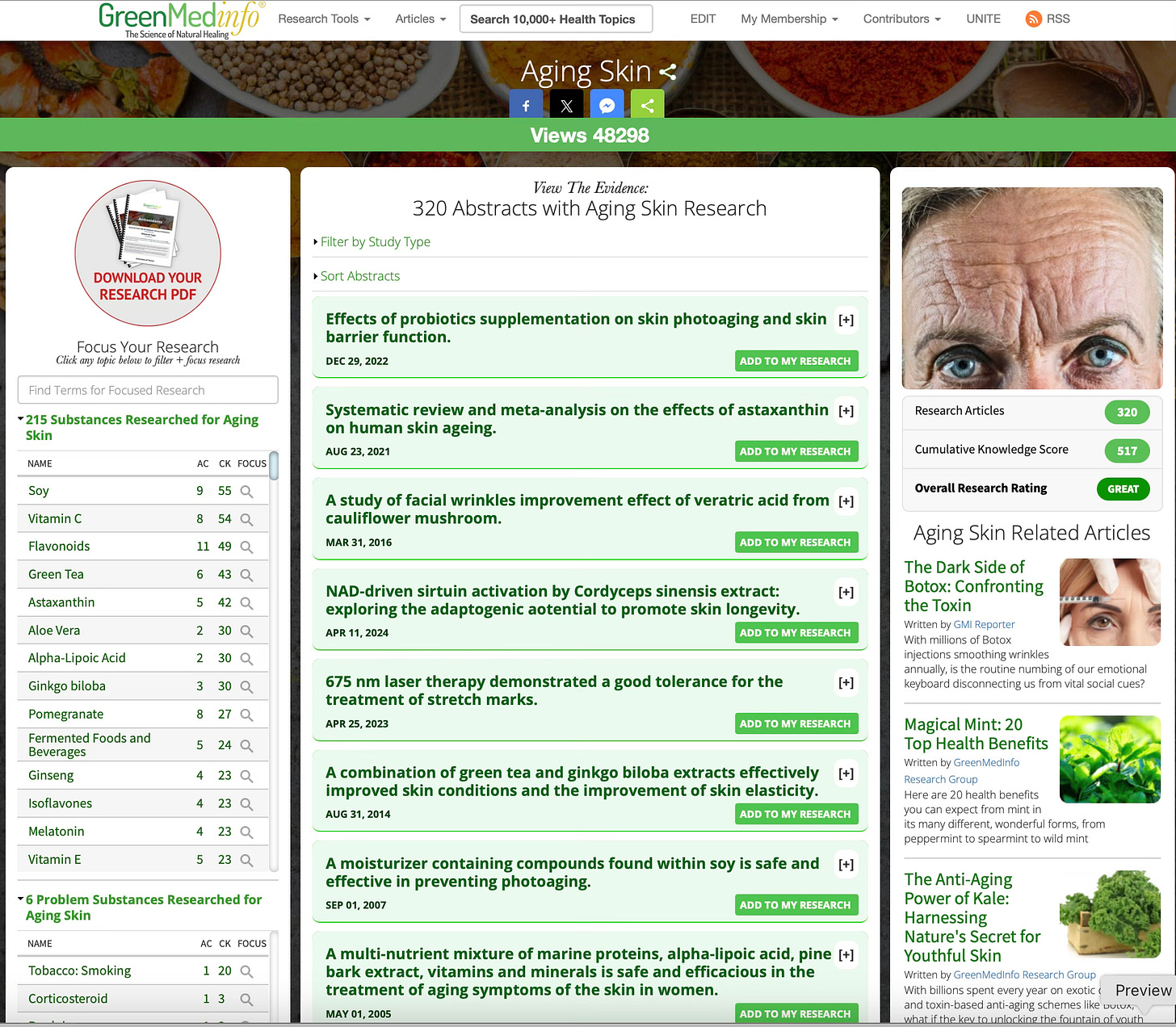 Consult the GreenMedinfo.com database on natural skin aging approaches here.