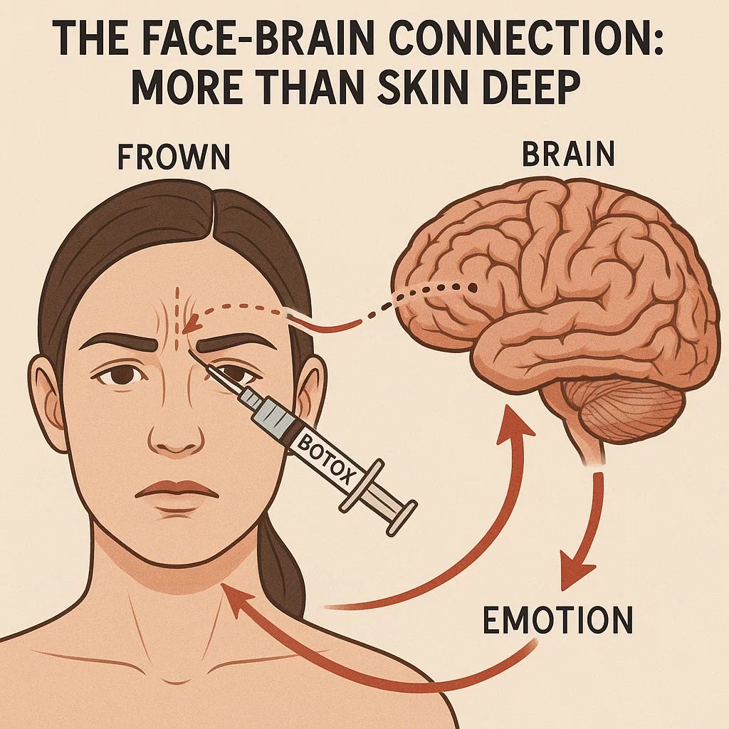 Research has already shown that temporarily paralyzing facial muscles can have surprisingly far-reaching effects.In one study, people who received Botox in their forehead showed reduced brain responses to touch stimuli on their hands—evidence that facial paralysis can influence cortical processing beyond the injection site.¹³