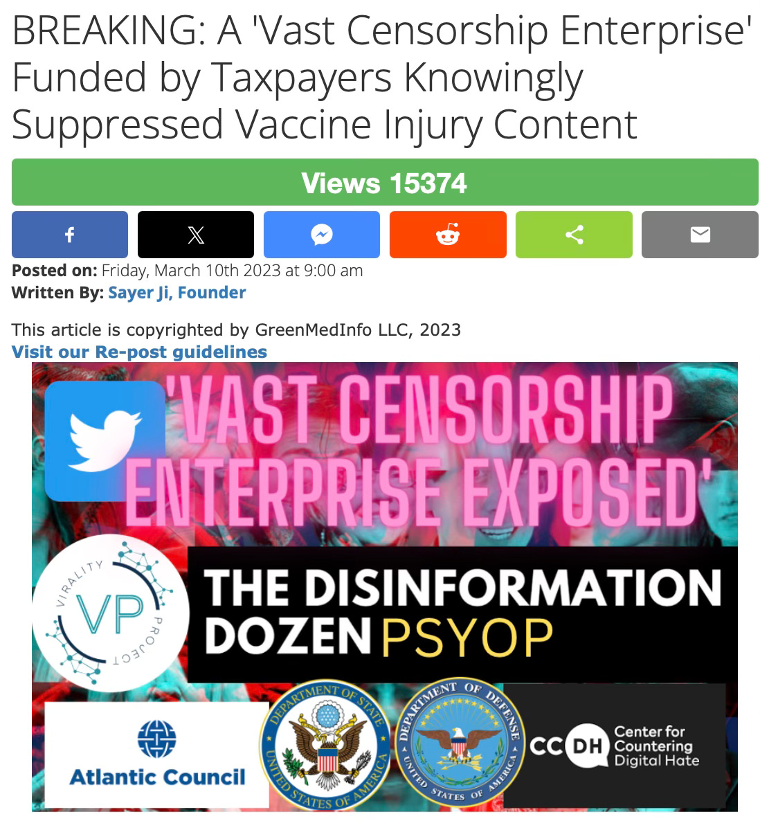 But the damage was already done. The false “Disinformation Dozen” label was wielded as a reputational weapon, echoed by officials, and amplified by compliant media.