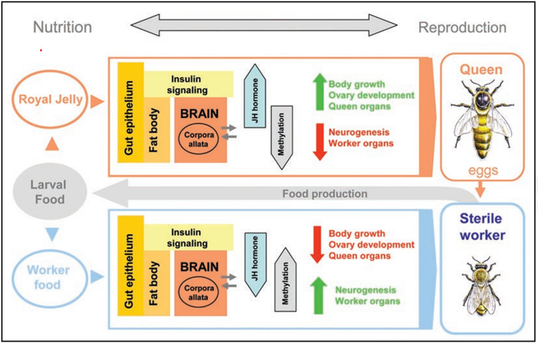 Wild Hives (2020). "Nutritional castration concept." https://wildhives.com/blog/epigenetics-honey-bees-gene-response