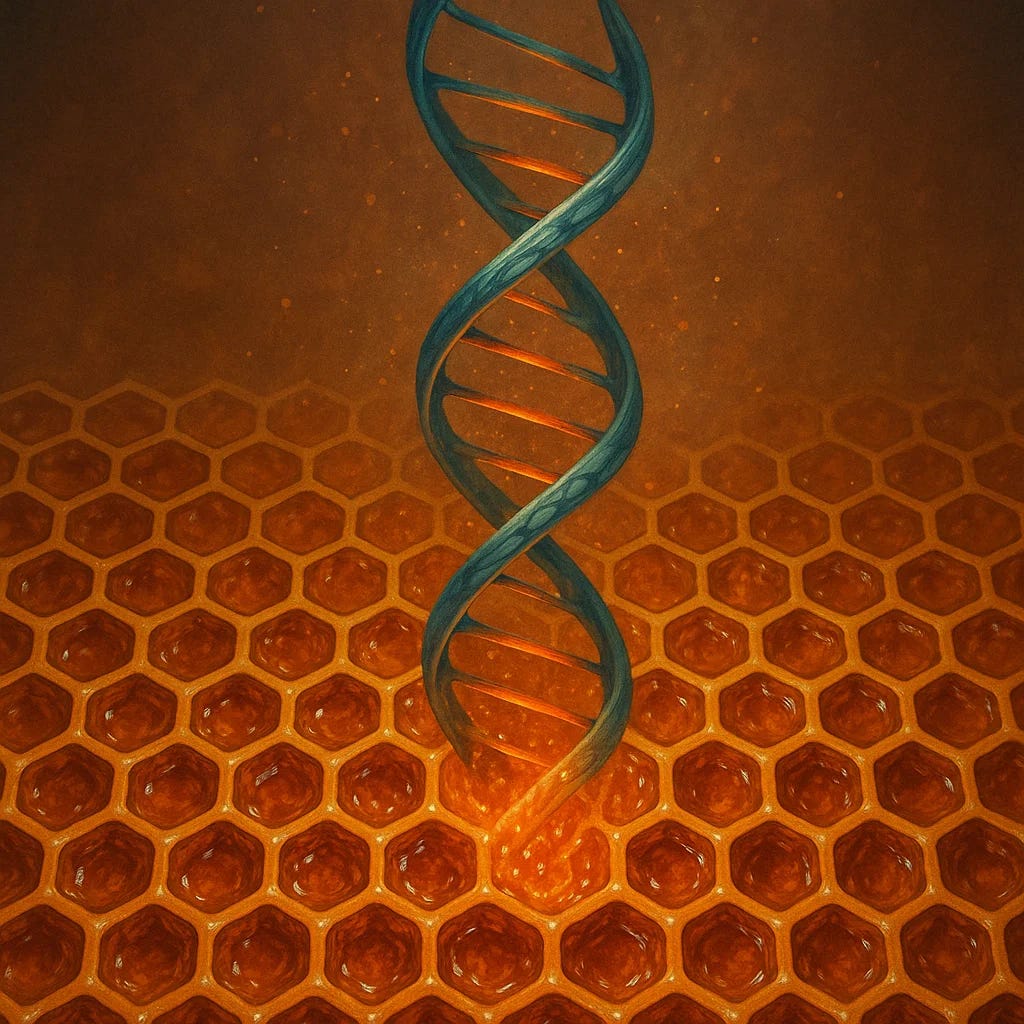 Royal jelly exemplifies "nutrigenomics" in action: it is food that carries specific genetic instructions. The queen-making power of RJ arises from its influence on gene expression, achieved through epigenetic modifications and regulatory molecules. In the honeybee, epigenetics -- heritable changes in gene activity without DNA sequence change -- underlies caste differentiation¹⁸⁻¹⁷. Both queens and workers have the same DNA; what differs is which genes are turned on or off, and royal jelly is the environmental trigger that sets this pattern.