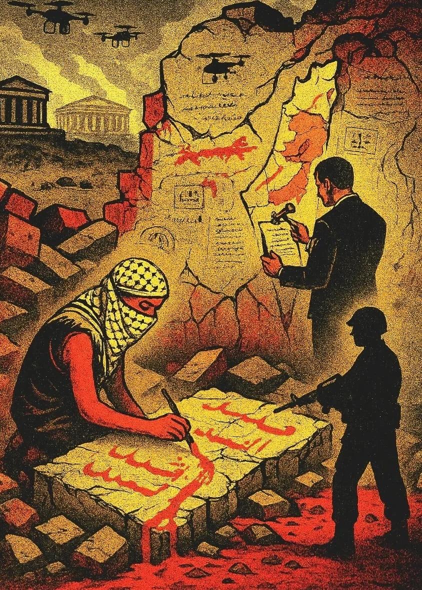 Although abiding by the October 2025 Trump-brokered ceasefire — a deal that claims to stabilize but instead entrenches asymmetry — Palestinians are actively resisting this containment. Through legal filings, civil documentation, mutual aid, and discursive reframing, they refuse to let transitional committees and humanitarian optics overwrite the demand for sovereignty, return, and accountability.
