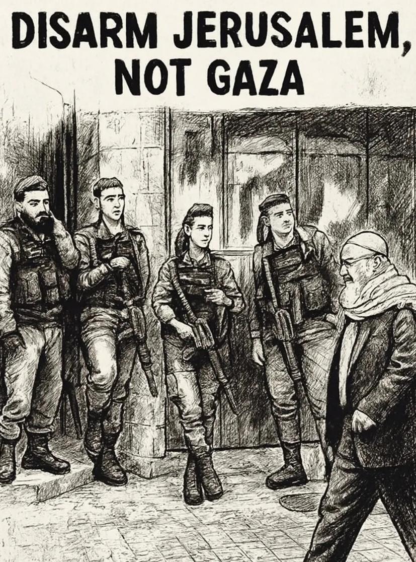 This essay argues that disarmament must begin in Jerusalem — the epicenter of supremacist sovereignty and settler-colonial control — not in Gaza, which remains besieged and starved.