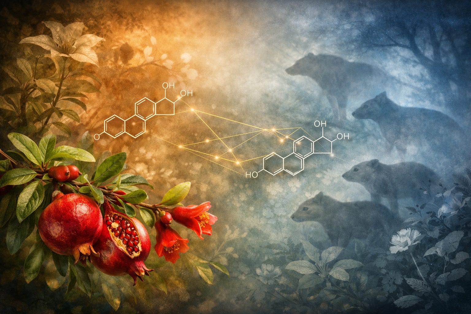 Bioidentical hormones: Pomegranate seeds contain actual mammalian estrone—not a mimic, but the identical molecule—at the highest concentration known in any plant source