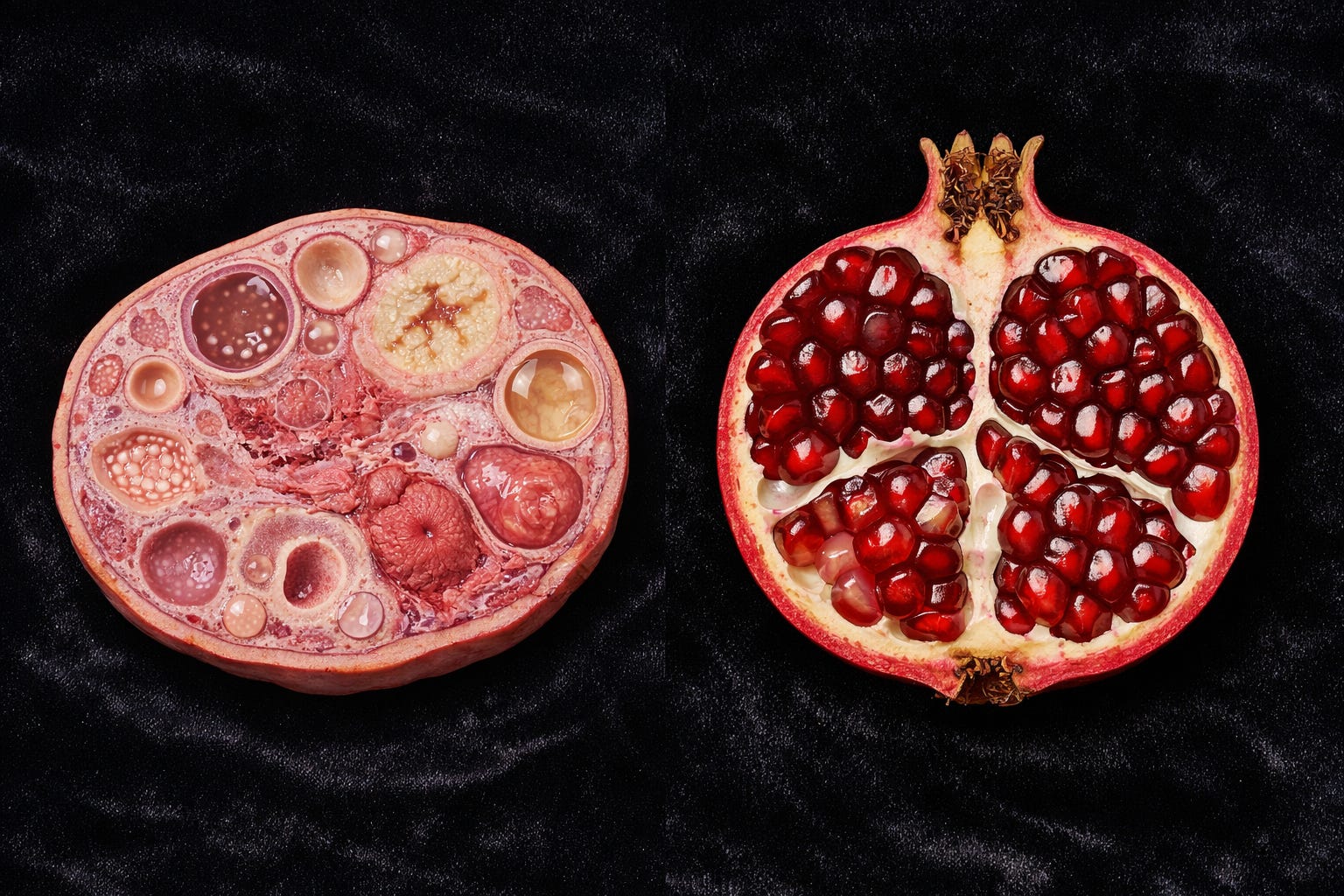 The visual resemblance is striking—so striking, in fact, that ancient physicians following the doctrine of signatures prescribed pomegranate for female fertility and reproductive health.