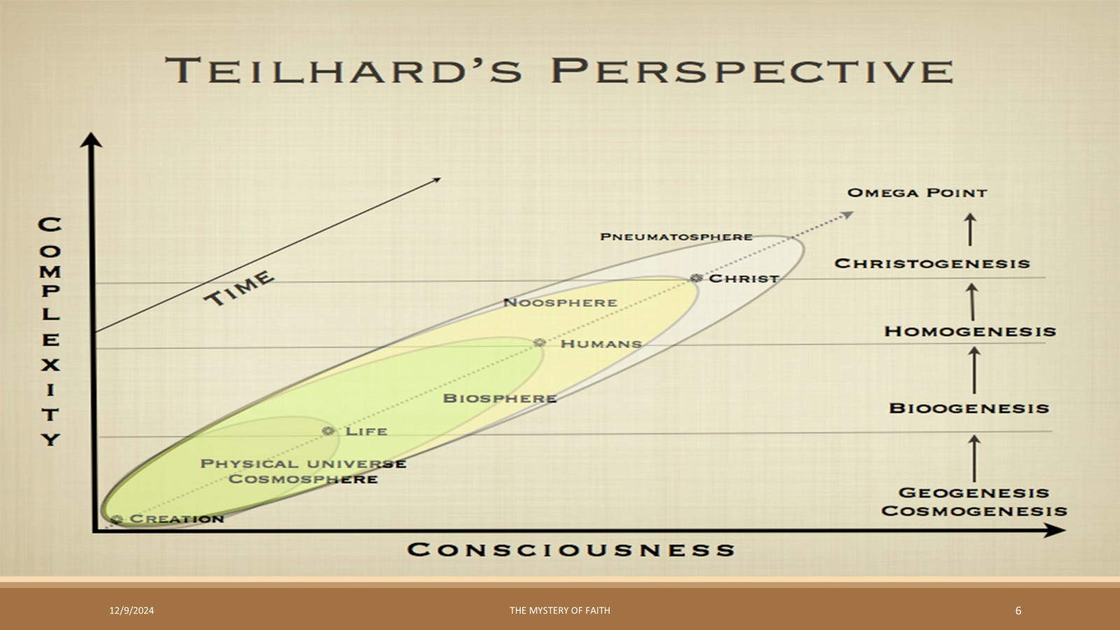 Teilhard called the endpoint of this process the Omega Point — the moment toward which all of evolution converges. Not an impersonal abstraction, but a living center of cosmic love drawing everything into itself. He called this process Christogenesis: the universe becoming the body of Christ, not through dogma but through the actual evolutionary movement of matter toward spirit, of complexity toward consciousness, of isolation toward communion.